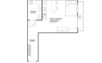 - Pokój dzienny: Duże łóżko z materacem, komoda, sofa, biurko